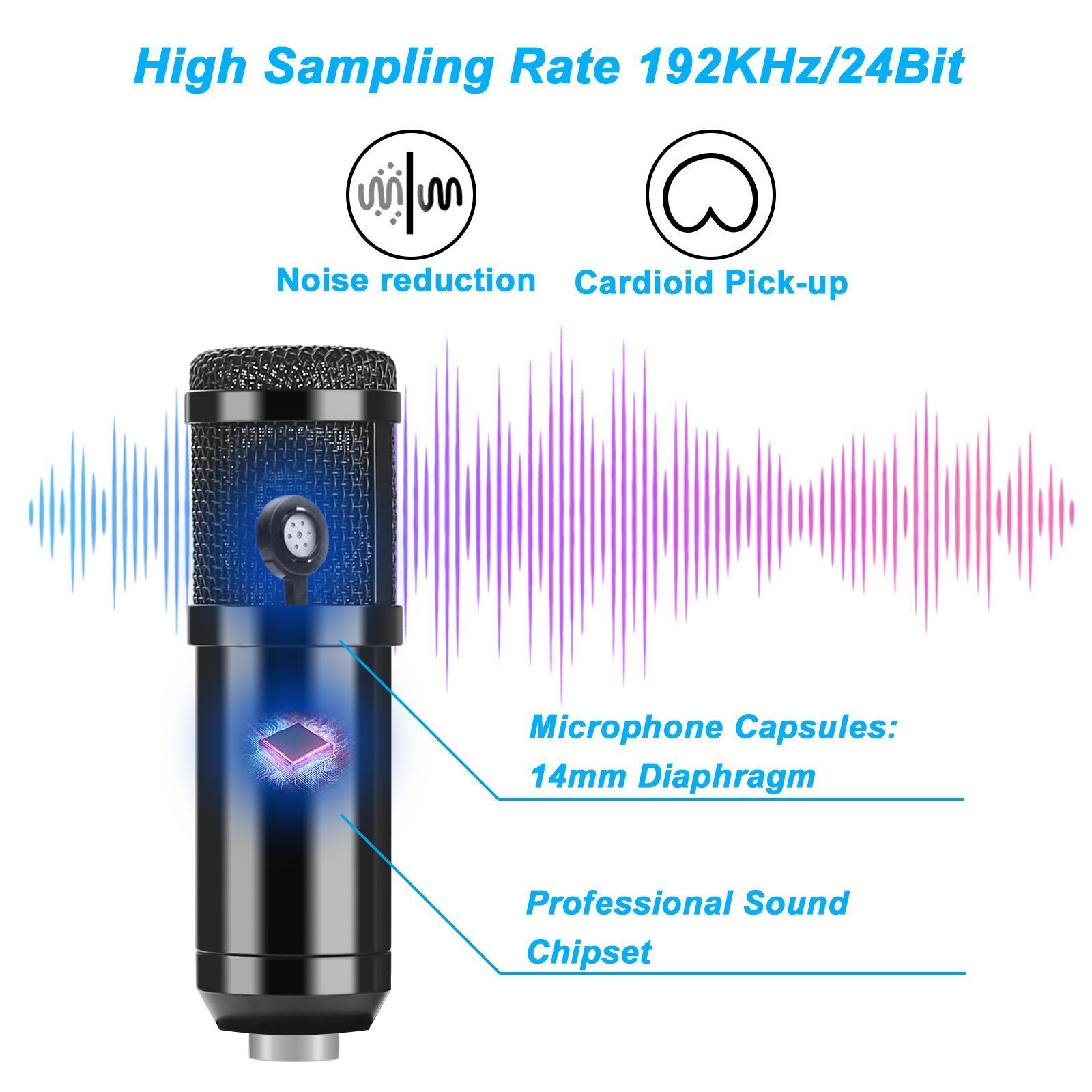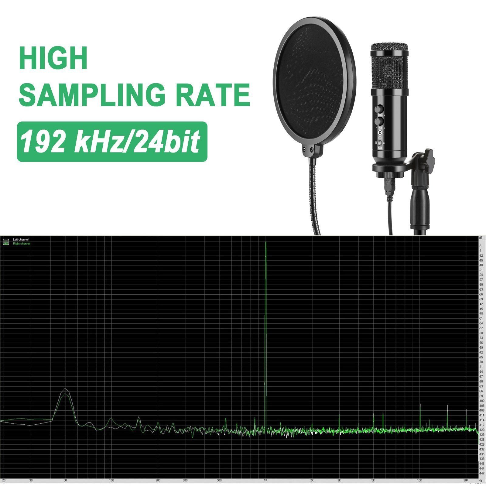 • PROFESSIONAL SOUND CHIPSET: This type of USB microphone is designed by a professional sound chipset. which maintains the mic at a high resolution and sampling rate. The sampling rate is 192kHz/24bit. The smooth frequency 30Hz-16kHz is way more suitable for singing. speech and voiceover and thus. putting your voice in a perfect acoustic environment.