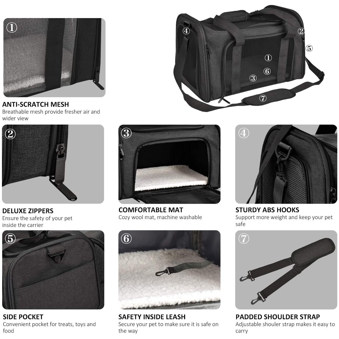 • Not Airline Approved – The large pet carrier is only suitable for daily travel. car seat journey and pet hospital etc. Do not place it under an airplane seat