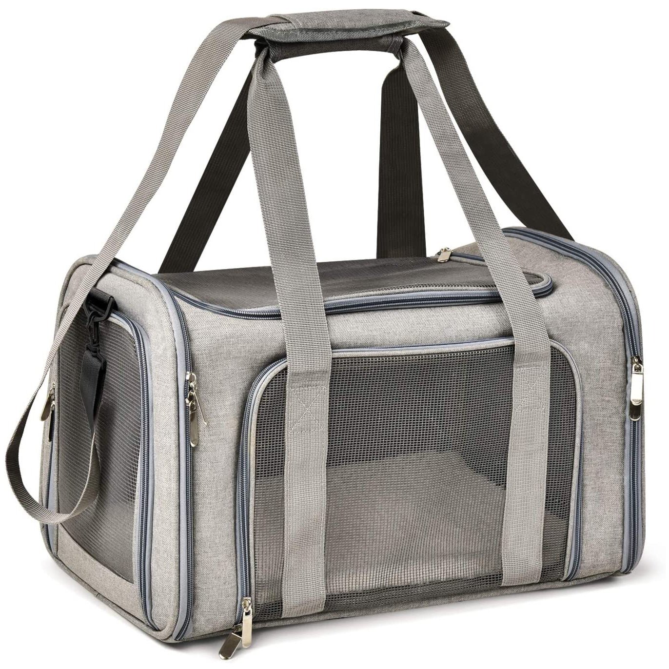 • Durable – This cat carrier is made of durable and lightweight polyester fabric. The four-side mesh will not only give a safe and comfortable travel for your pet. but also easy for you to check on your pet