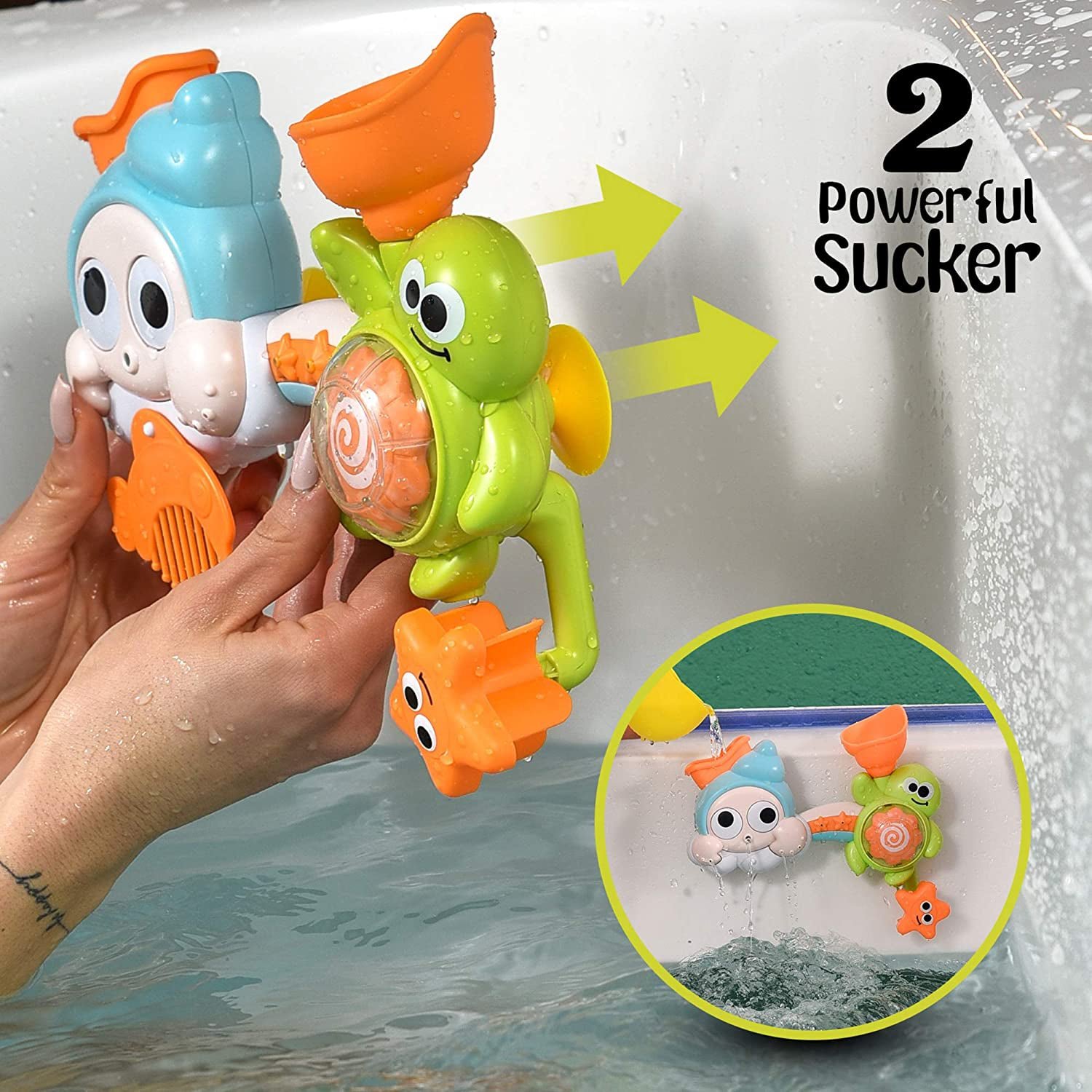 • EASY TO INSTALL: With strong suction cups. this fill n spill toy easily sticks onto the bathtub ?C no need to drill holes or buy extra adhesive! These bathtub toys for toddlers (3-4 years) can be easily removed and put away for easy storage.