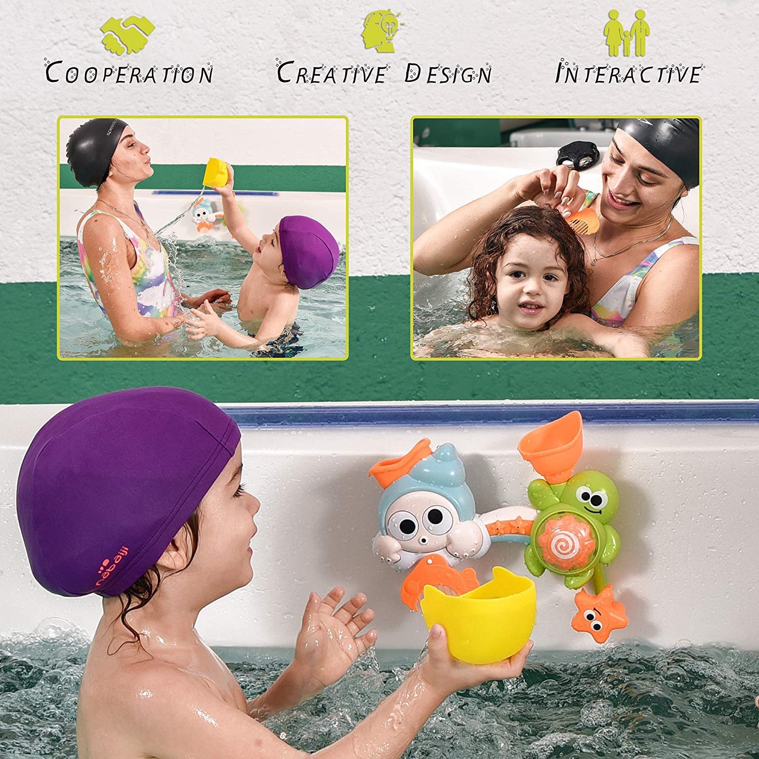• ENTERTAINING DESIGN: The bathtub toys for toddlers (age 3-5) feature an amusing waterfall station type design with other engaging elements like a rotating gear. pipe outlets. and big rotating eyes to make your child squeal with delight!