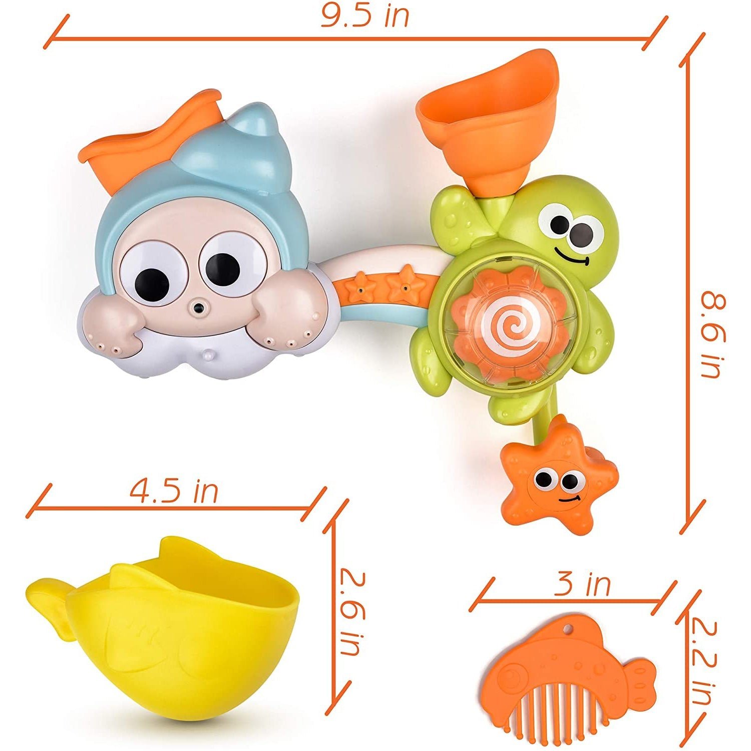 • SAFE FOR CHILDREN: Made especially for little kids. the bathtub toy set for toddlers doesn’t have any sharp edges that can hurt them. and is manufactured only with the finest materials to ensure a durable long-lasting finish.