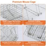 This is a sturdy and fantastic humane mouse or critter trap. You set the trap from the outside of the cage. Then drop some sunflower seeds through the top of the cage without having to put your hands inside no matter when used indoor or outdoor. or bait it with snacks attractant to trap voles. squirrels. chipmunks. mice. rats. weasels and other similar size animals. Additional rear door lock hook and latch followed by gravity once triggering completely prevents captive animals from escaping from the door. It is also easy to set the target caught animal free just by re-setting the trap. All sets in seconds. Spacious capacity can hold dual mice at the same time.