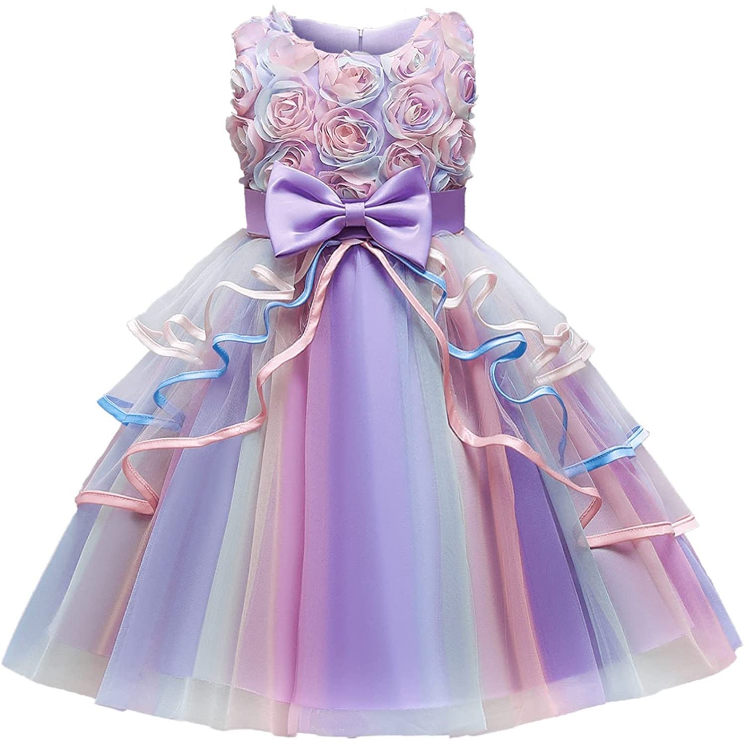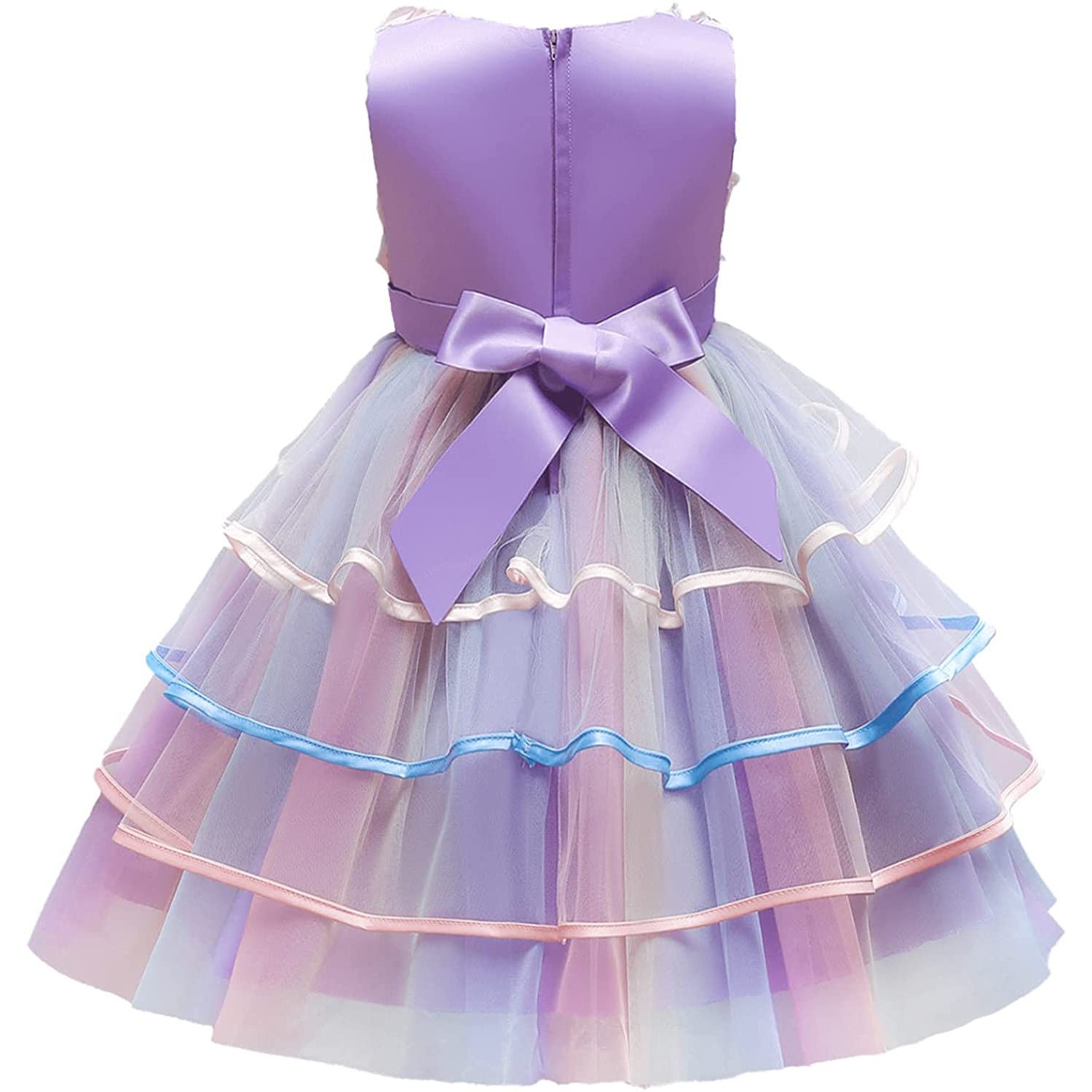 Worry about no beautiful than other little kids? Want to been commended and admired on the wedding party? Zipper back fitted bodice has an attached sash made of sheer organza and includes a matching belt highlighting the waistline. The bowknots on bodice front is so adorable and add the cutest extra touch. Make your baby become more fashionable. attractive. beautiful. your kids will like it as a Princess gift.