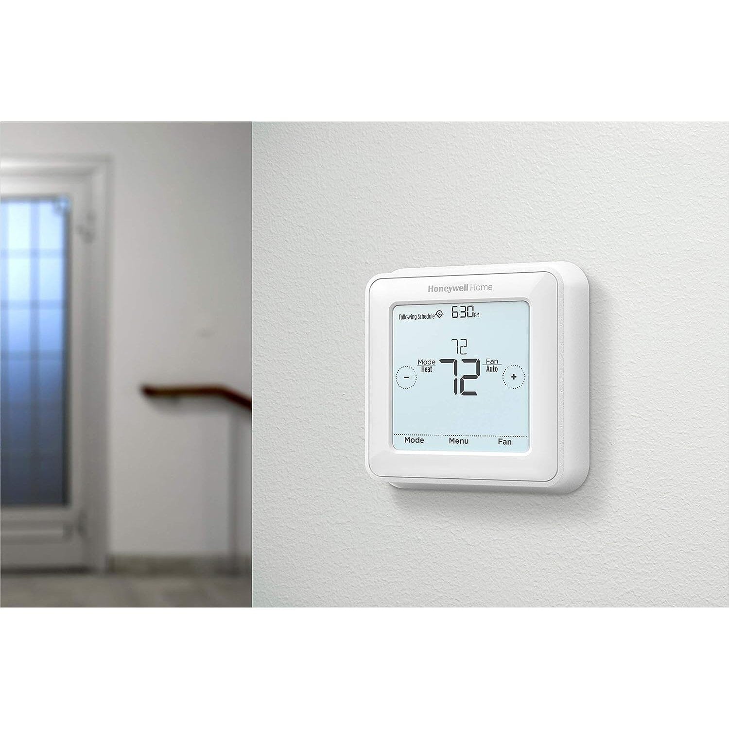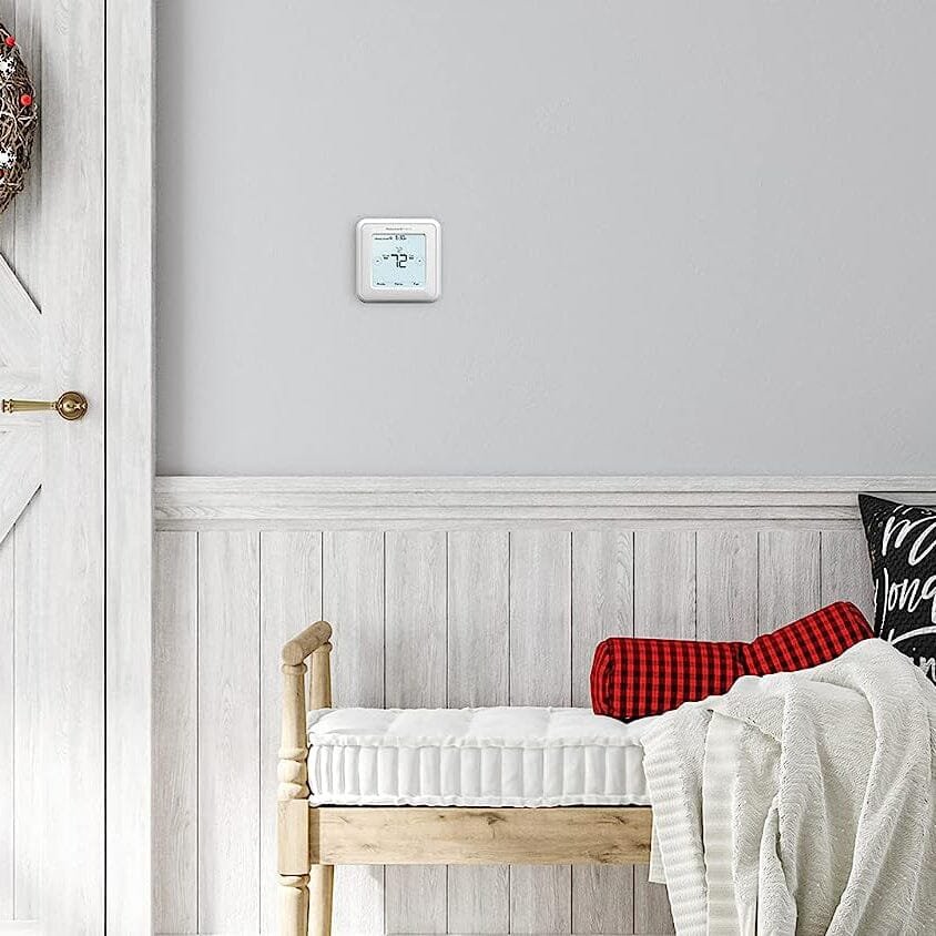 Keep your home at just the right temperature with the Honeywell Home T5 Touchscreen 7-Day Programmable Thermostat. Choose battery-powered or hard-wired operation. Your settings stay safe with the permanent day and time backup. The advanced design provides maximum comfort by sensing whether your home needs heating or cooling. It is packed with features and options yet easy to program. with a contemporary design and an extra-large. backlit touchscreen display.