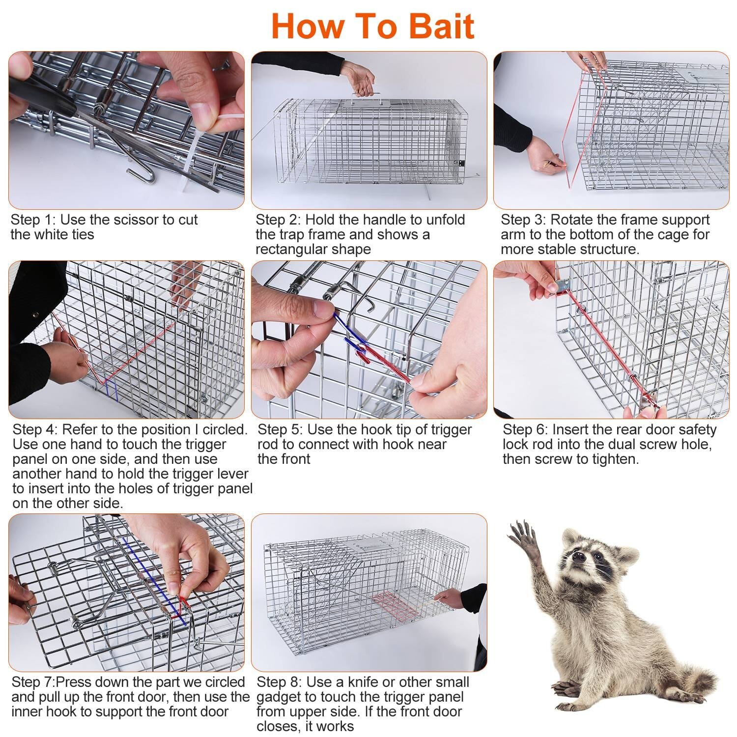 • Humane Trap Cage: Come with sensitive trigger and front spring door. the animal only needs to touch the pedal gently. then the trap can be triggered immediately and door will be closed immediately. This ensures that animals cannot escape. Also come with a rear door. you can release animal if you want.