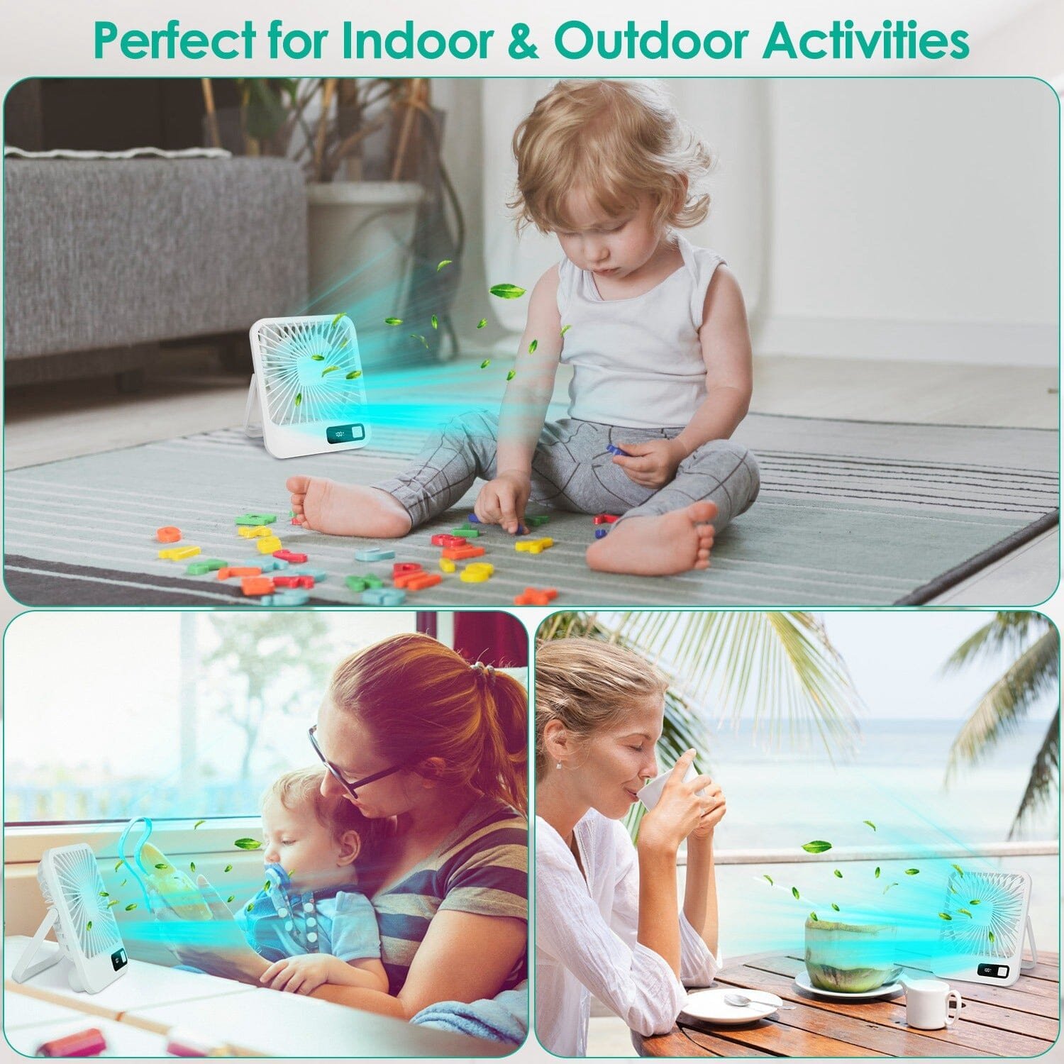 Mini Desktop Cooling Fan Rechargeable Battery Powered with LCD Display