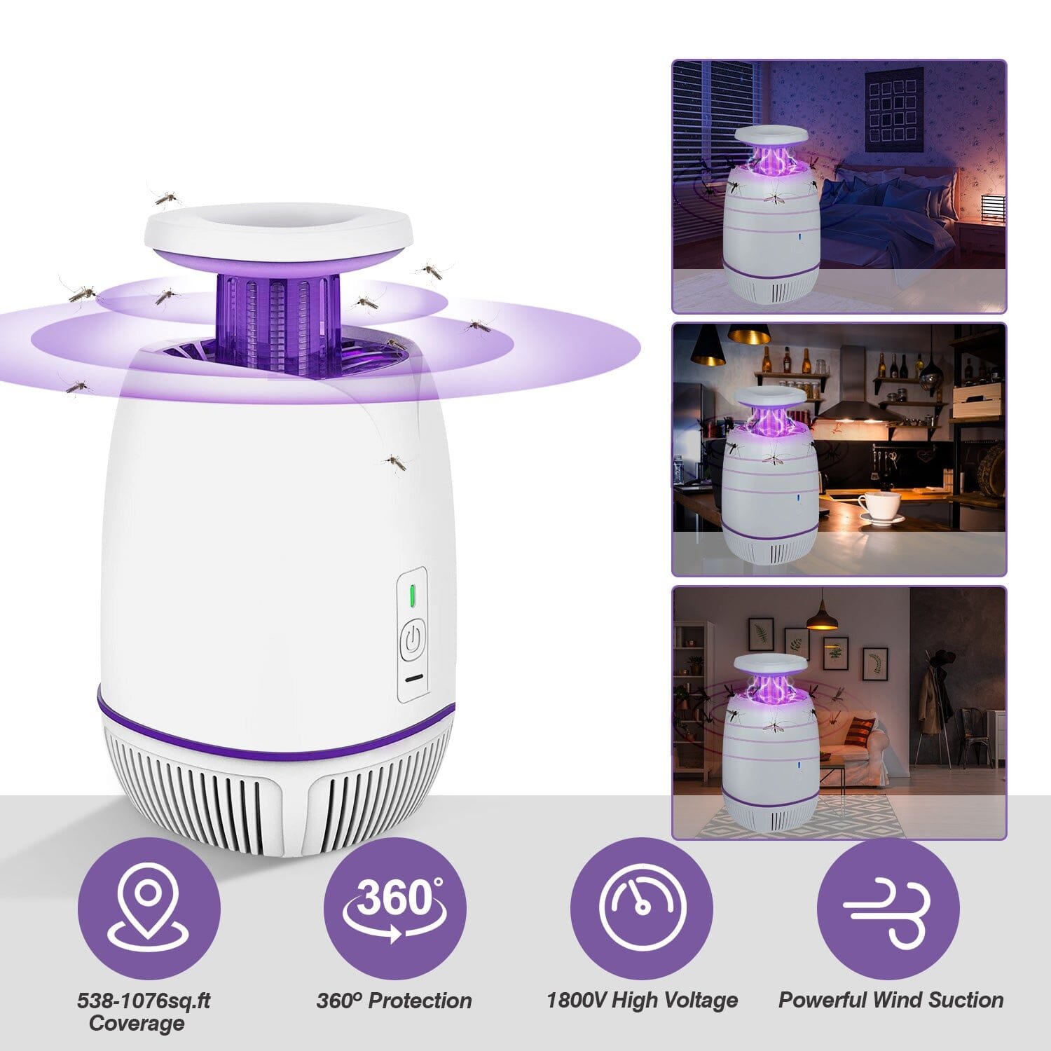 - Effective Mosquito Zapper: Our mosquito zapper can emit 395nm 360 UV light to lure the annoying mosquitoes. then kill them with electric shock and wind suction. Finally. the mosquitoes can be electrocuted by the 1800V high voltage.