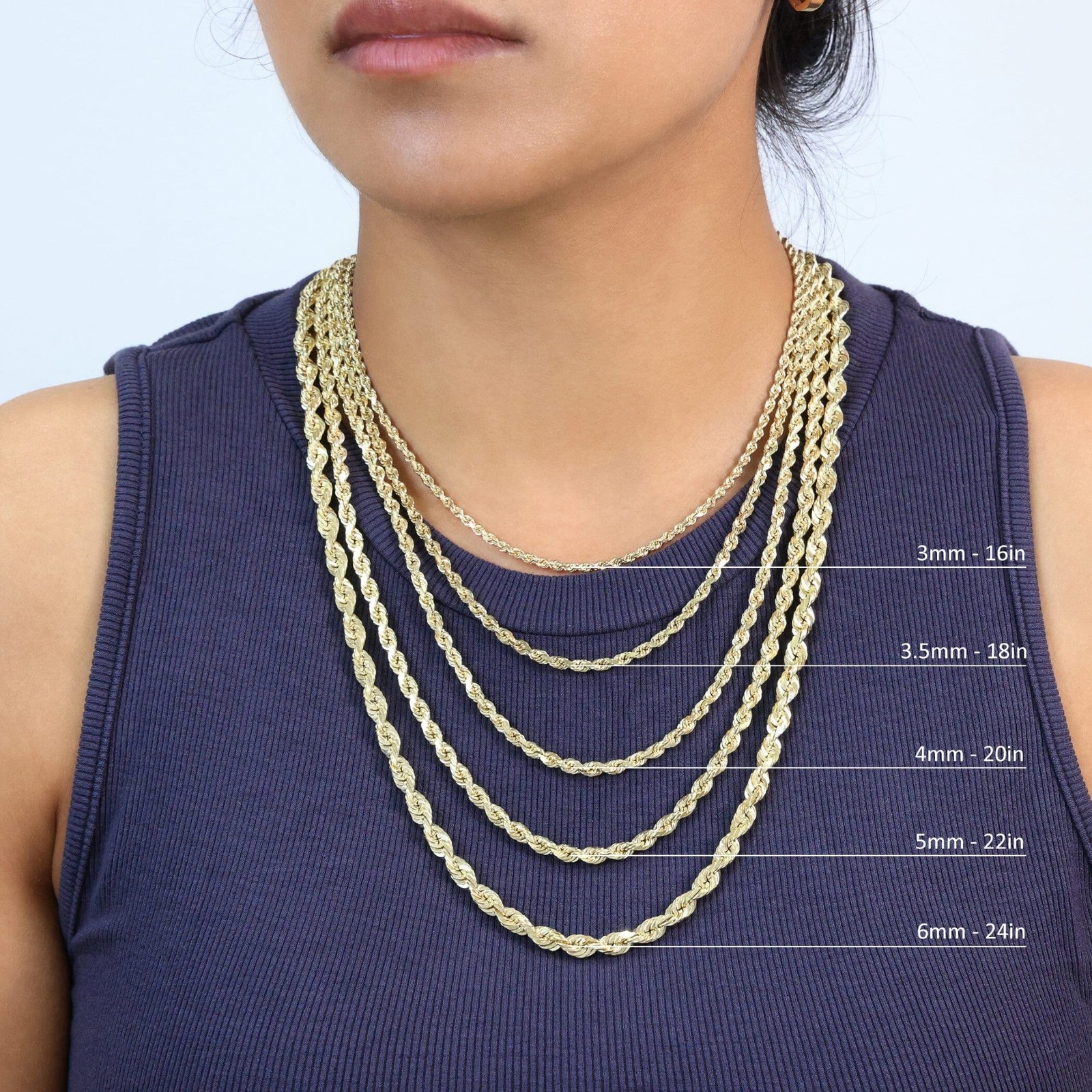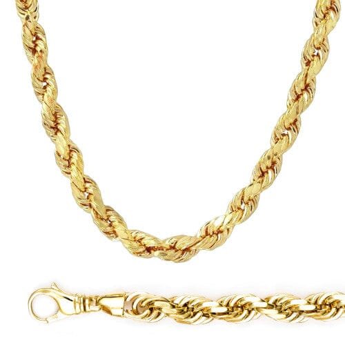 The 10mm gold rope chain is the ultimate statement piece for those who appreciate bold and timeless style. Handcrafted from the finest materials. this chain boasts an intricate design that offers the perfect combination of strength and flexibility. Its smooth and sleek texture makes it a true pleasure to wear. while its classic design ensures that it will never go out of style. Whether you’re dressing up or keeping it casual. the gold rope chain is the perfect accessory to take your look to the next level.