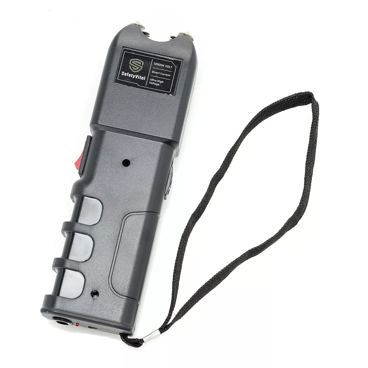 Searching for a high-end stun gun at a low-end price? Look no further than the Safety Vital Stun Gun with LED Flashlight. We have a limited number of these units available and they will not last long at this blow price! At 6.50 inches long. it puts more space between you and your attacker. the strong LED lights your way safely at night. and it features Grab Guard Stun Strips along the top sides so that anyone attempting to take it away from you will receive the shock of a lifetime!