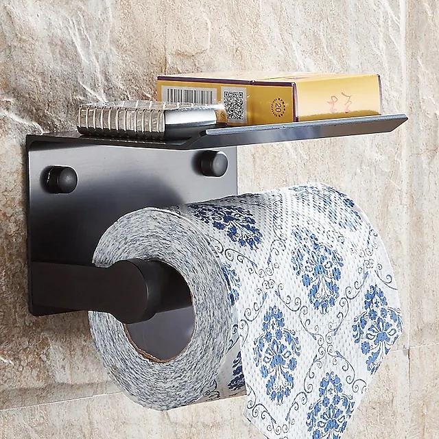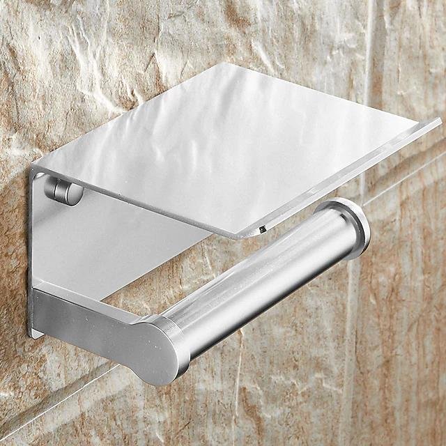 Toilet Paper Holder With Shelf Alumium Alloy Creative Modern Aluminum 1pc Wall Mounted for Mobile Phone Storage Dispenser Stand.