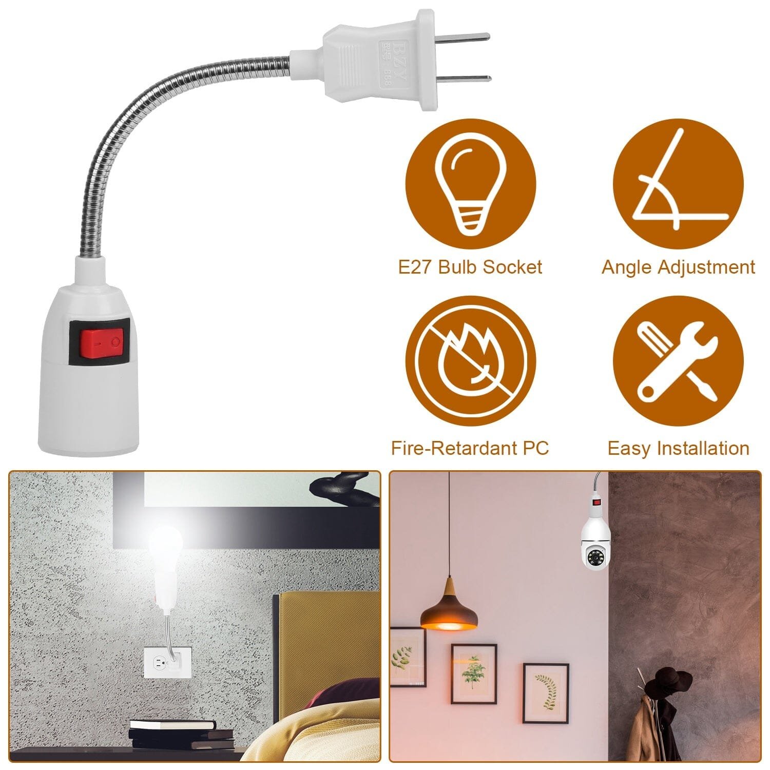E27 socket has good compatibility with your existing fixtures. a great replacement for your broken one. Come with bright color I/O switch. easy to control the on/off of light and camera. PC retardant materials bring you much safety. Plug and play. no other tools needed. Flexible goose neck enables you to position any angle you want. Ideal for home light fixture. plant grow light. basement. door light bulbs. showcase lighting and fish tank light.
