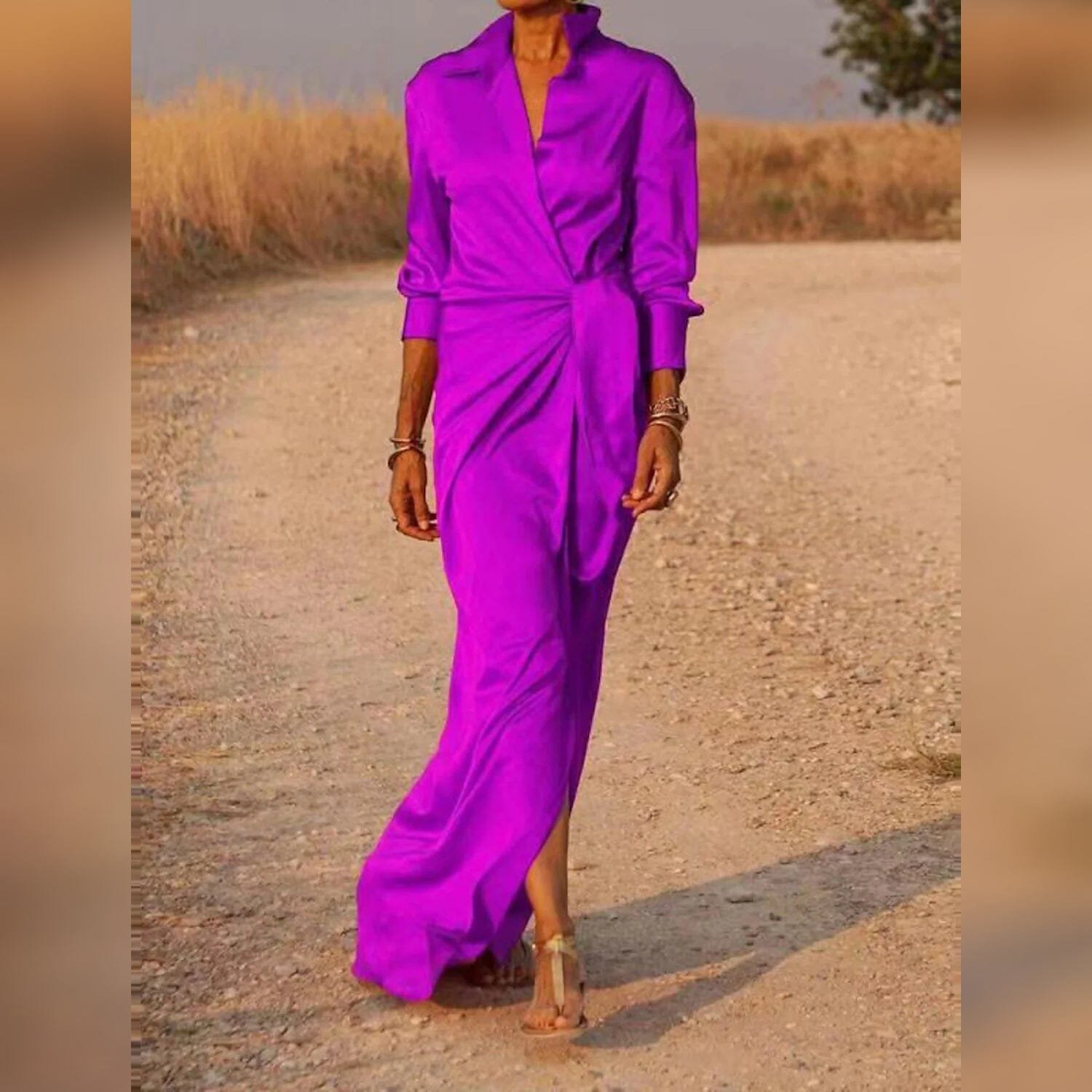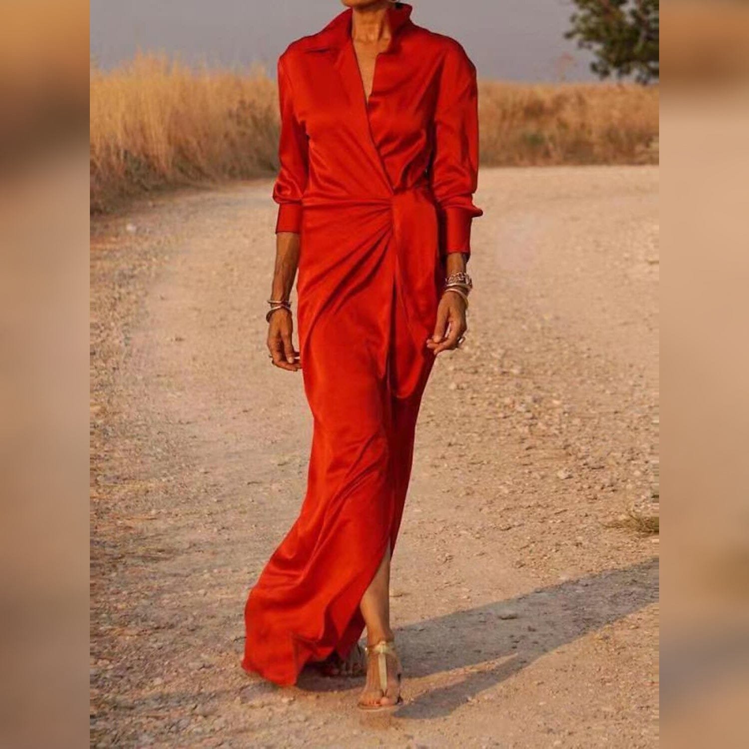 Women’s Shirt Dress Party Dress Shift Dress Long Dress Maxi Dress Black Red Blue Long Sleeve Pure Color Lace up Summer Spring V Neck Elegant Party Winter Dress Evening Party 2023.